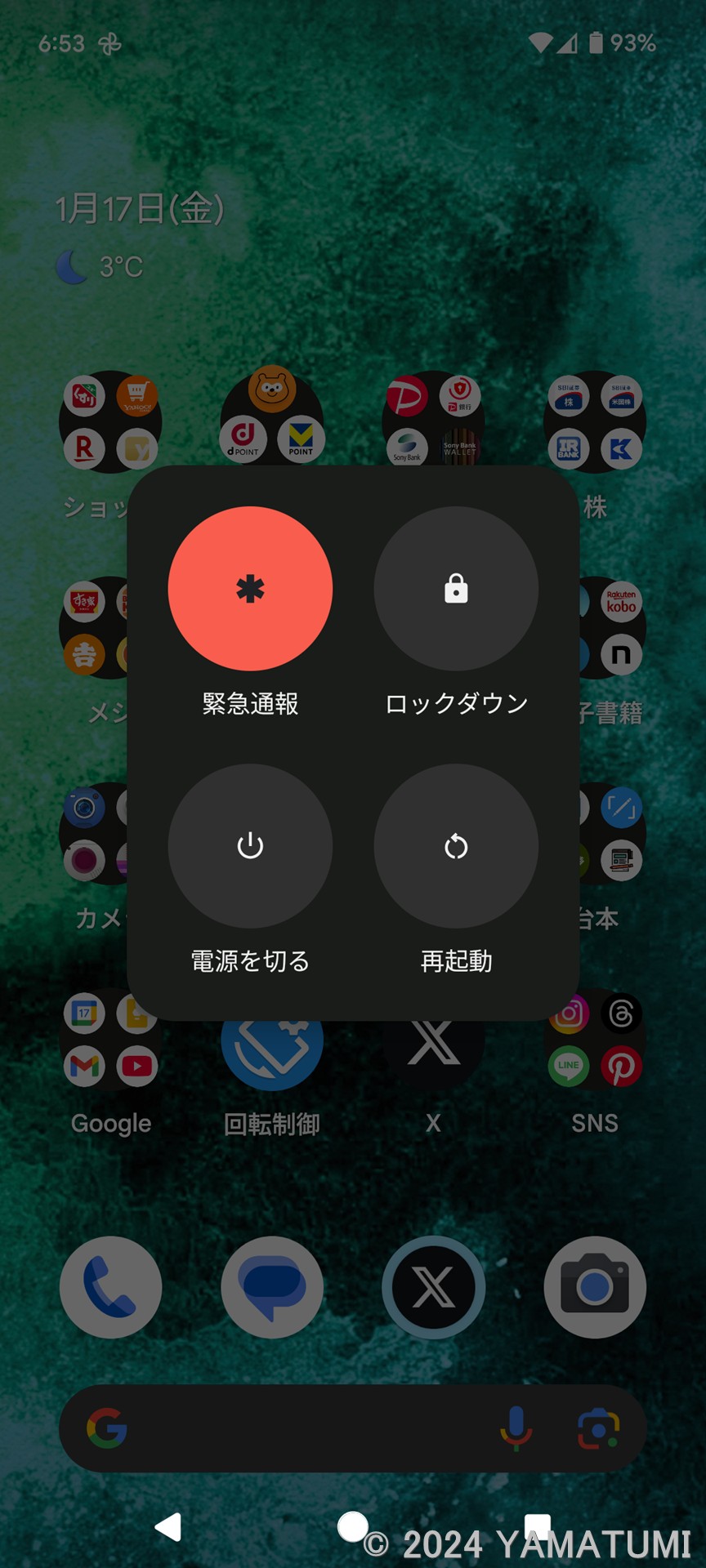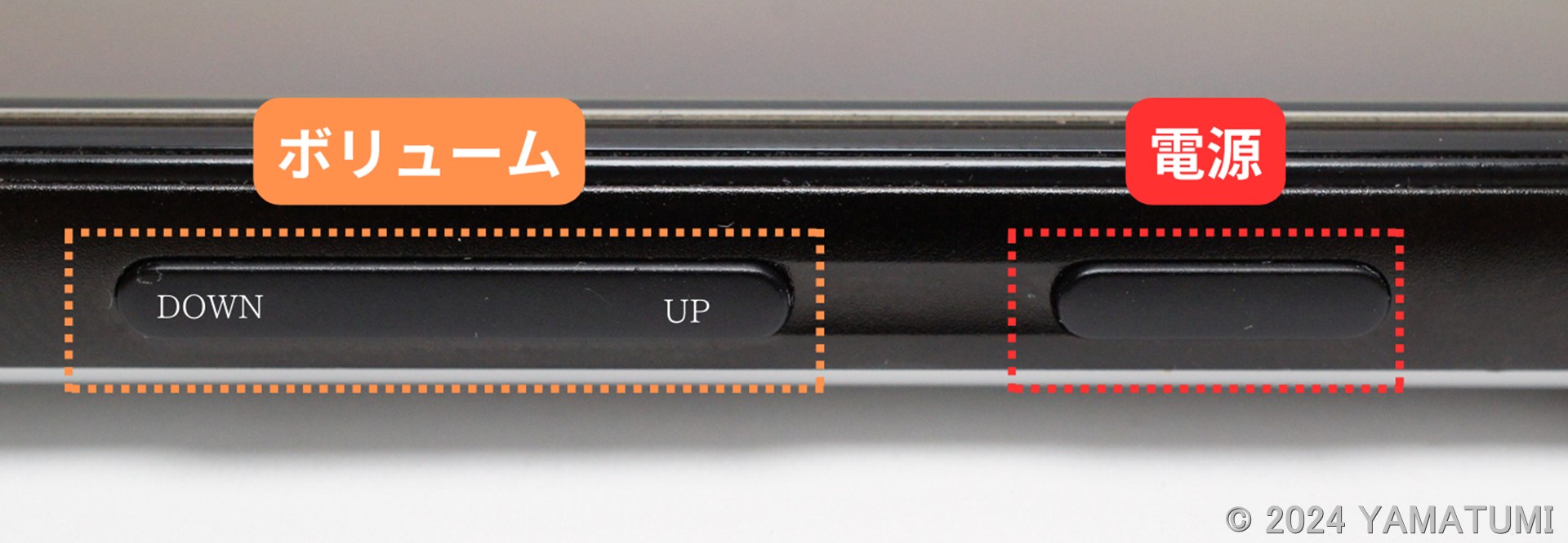 電源ボタン+ボリューム(音量)UPボタンを同時押し→再起動をタップ